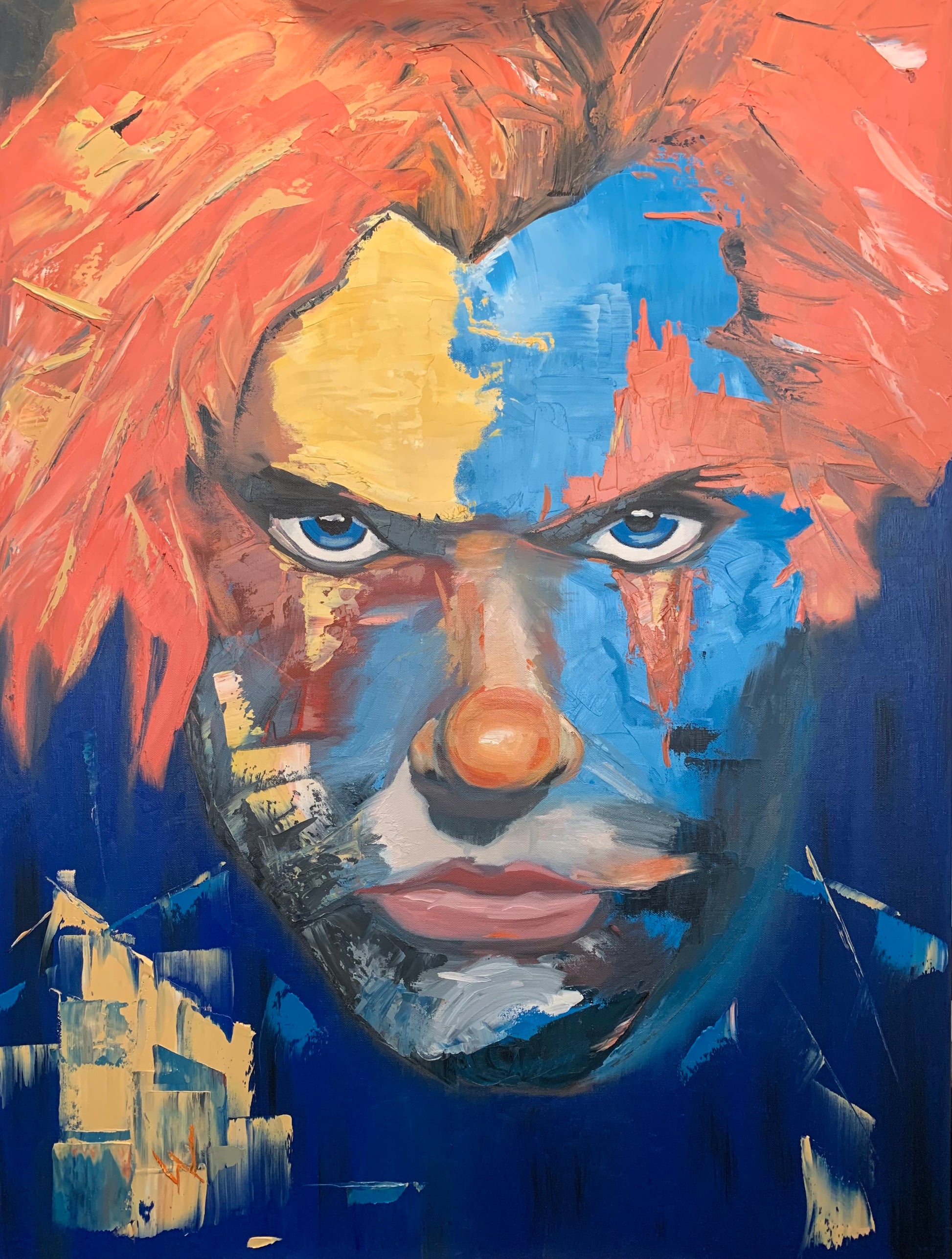 An Interpretive portrait of Coercive Control. This is the Original, 30” x 40” x 5/8" oil on canvas. Unframed.